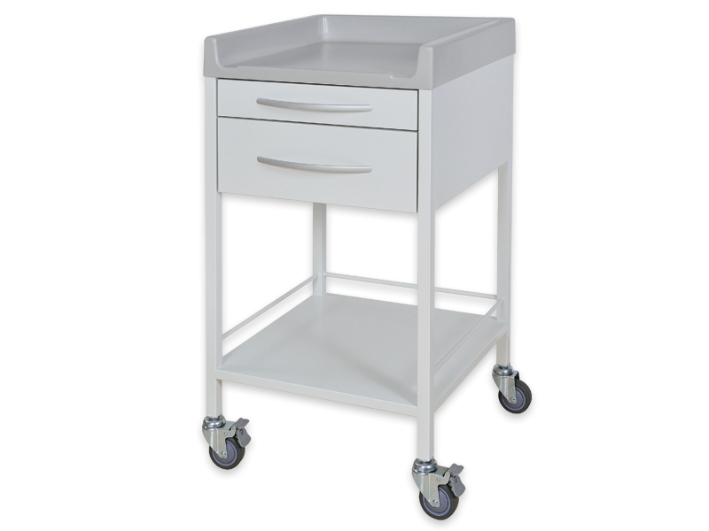 This slimline instrument trolley is equipped with 2 storage drawers and storage shelves with side rails, making it ideal for hospitals and healthcare centres. The optional, moulded ABS top has fluid retaining edges for easy cleaning.